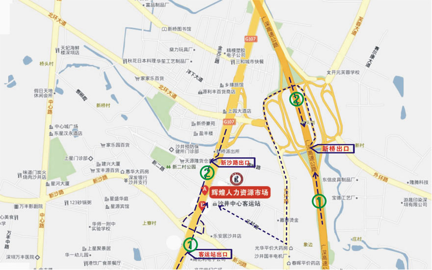 去程:松岗老汽车站 - 沙井中心客运站 - 福永汽车站 - 同乐检查站 - 火车站